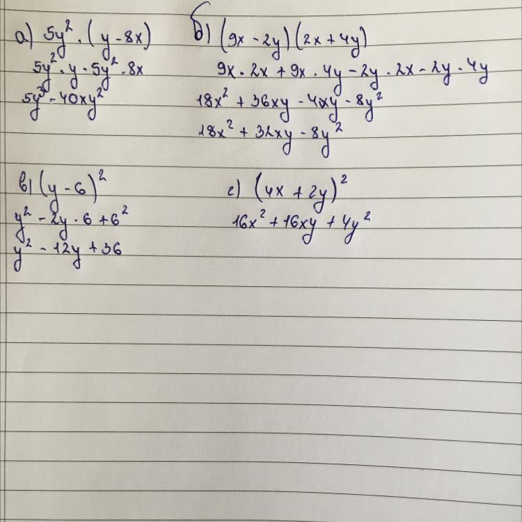 а) 5у² ( у – 8х ) ; б) ( 9х – 2у ) ( 2х + 4у ) ;
