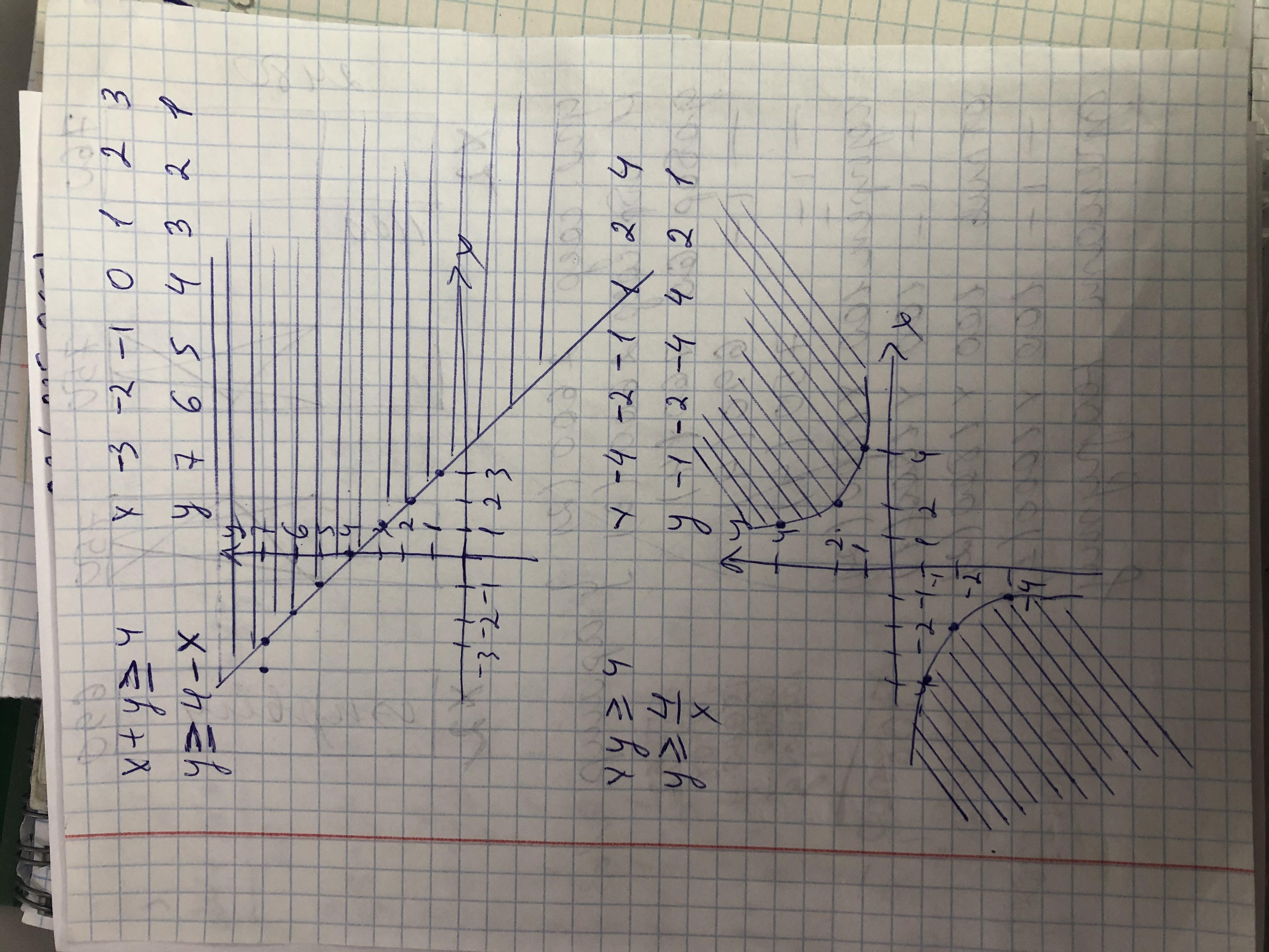 изобразите на координатной плоскости множество решений неравенства : а)x+y больше или равно 4 б) xy больше или равно 4
