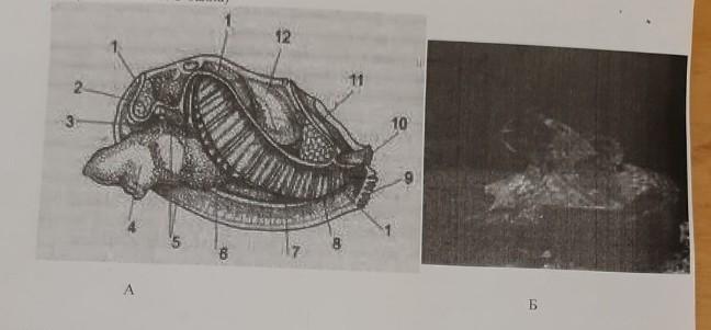 Назовите систему органов моллюсков, изображённую на рисунке (А) под номером пять. А)кровеносная Б)нервная В)дыхательная г)размножения