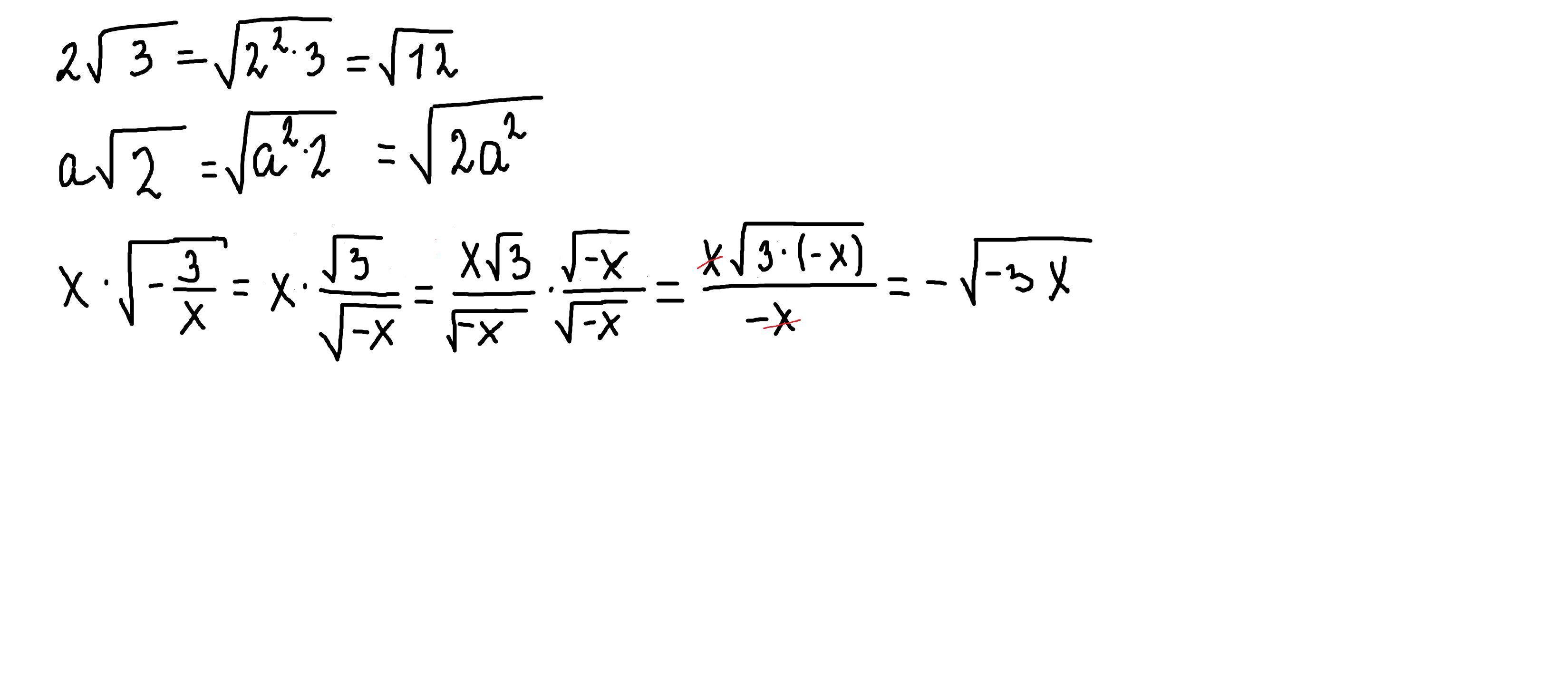 a) =V(4*3)=V(12), б) =V(2a^2) в) = V(-3x^2/ x)= V(-3/x)