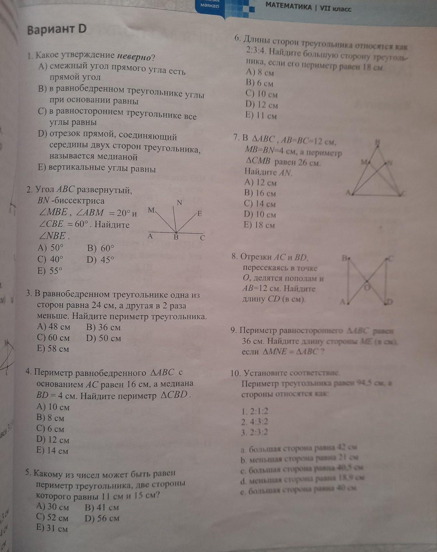 Верные варианты теста