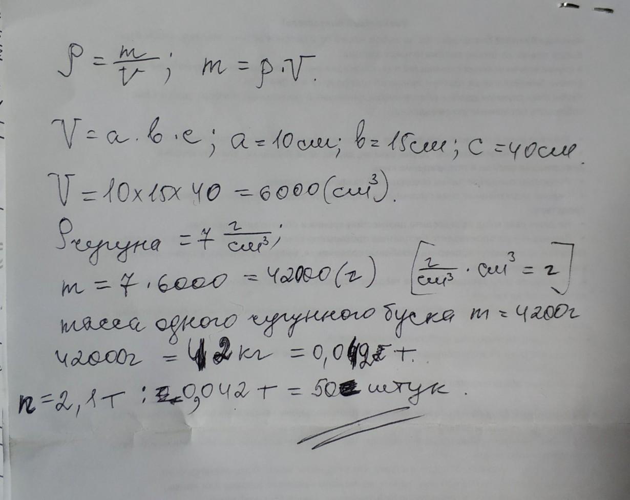 Плотность чугуна состовляет 7 г/см3