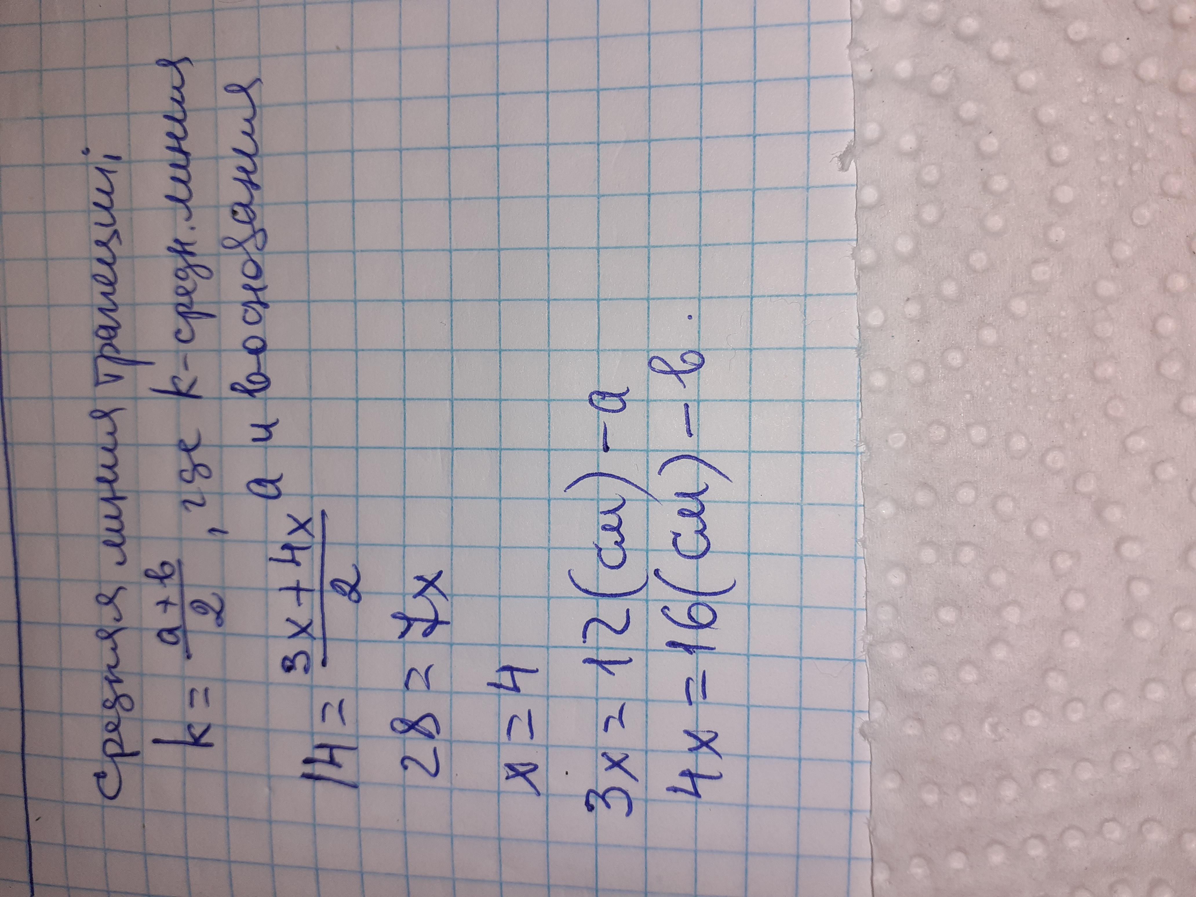 Відповідь: основи трапеції 12 і 16 см.