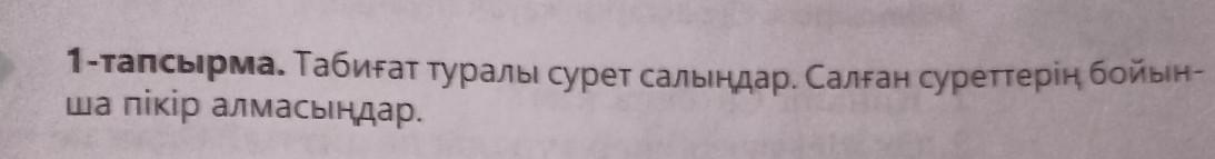 1-тапсырма. Табиғат туралы сурет салыңдар. Салған суреттерің бойынша пікір алмасыңдар.