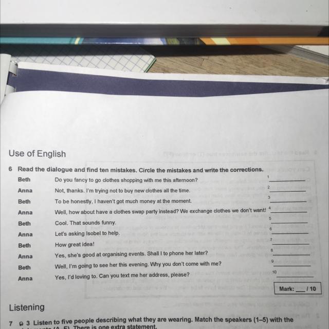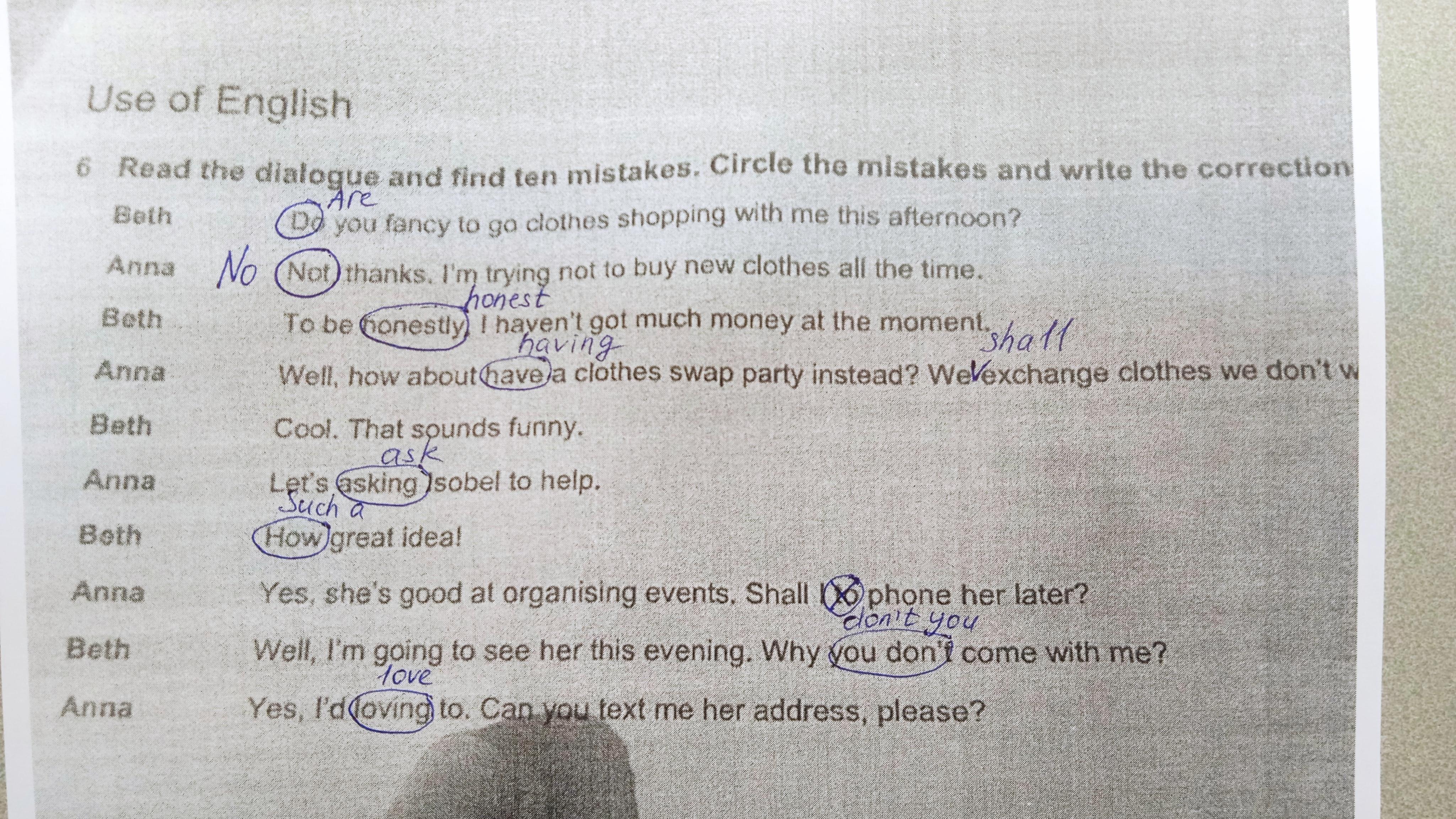 read the dialogue and find ten mistakes. circle the mistakes and write the corrections