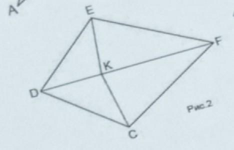 Треугольник EDK = треугольнику CDK по двум сторонам и углу между ними ( І признак равенства треугольников).