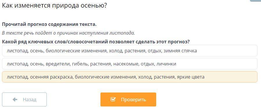 Только слова и словосочетания из первого ряда могут служить причинами наступления листопада.
