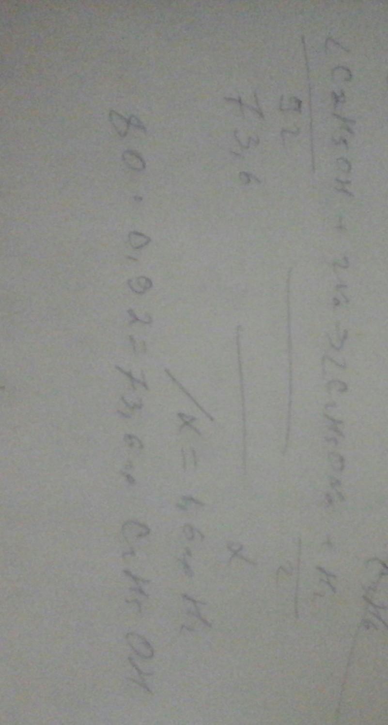 какая масса водорода выделится при взаимодействии натрия с 80 г раствора этилового спирта (массовая доля в растворе этанола 96%)(учитывать выделение водорода только из спирта)