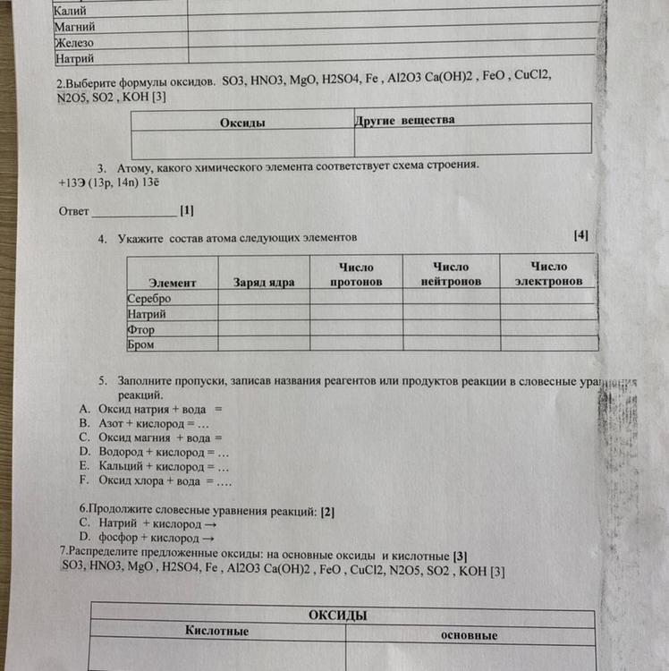 Оксиды: SO3, MgO, Al2O3, FeO, N2O5, SO2