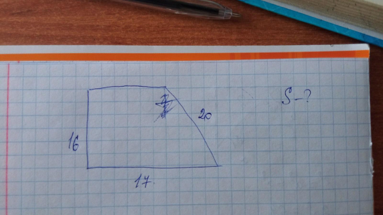 Отсекаем прямоугольный треугольник справа, его гипотенуза 20, катет 16, второй катет √(400-256)=12