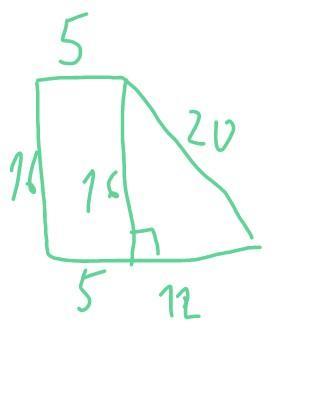 Значит трапеция делится на прямоугольник со сторонами 5 и 16, и на треугольник со сторонами 12, 16 и 20