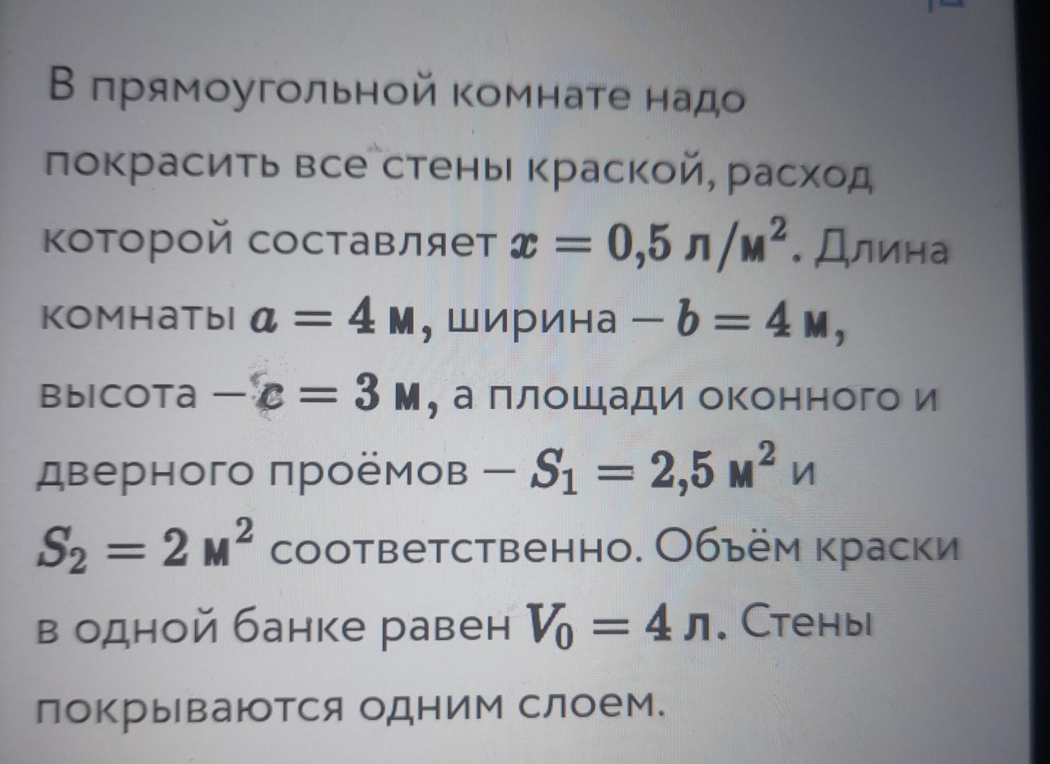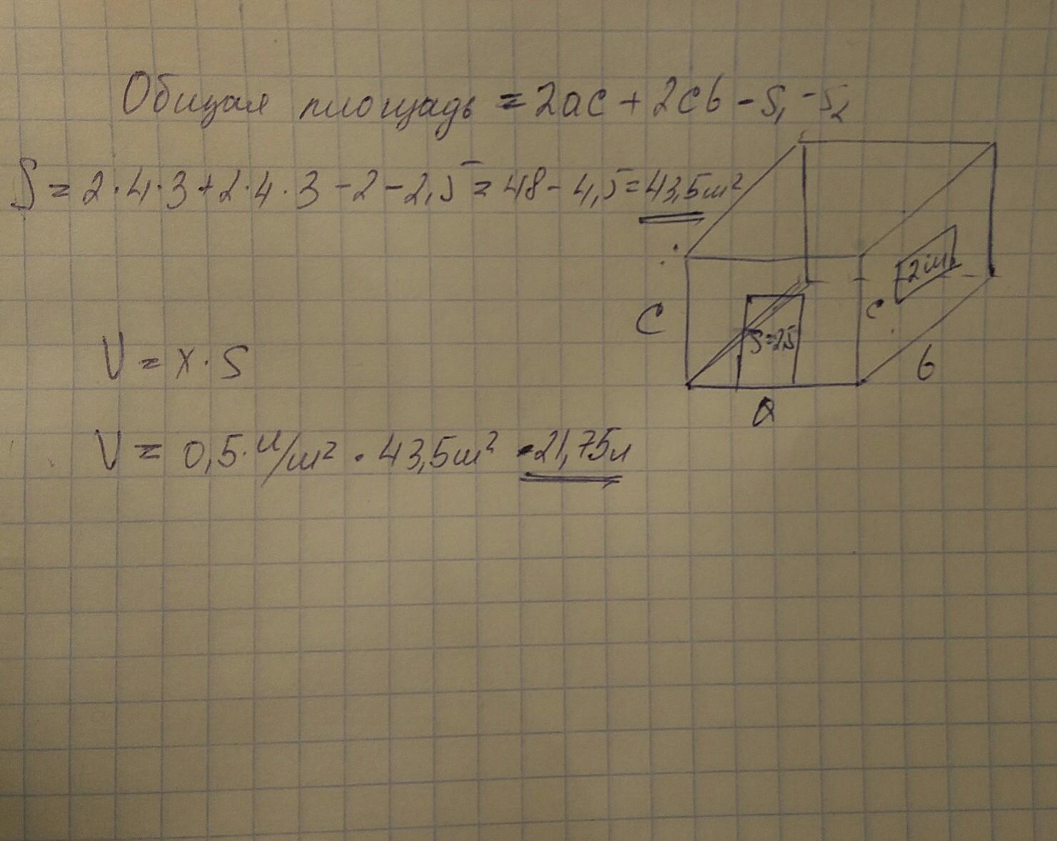 определите общее кол-во краски которое нужно потратить на покраску комнаты. ответ дайте в литра округлив до сотых.