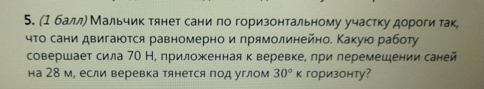Решение: A = F · s · cosₐ = 70Н · 28м · 0,87 = 1705 Дж