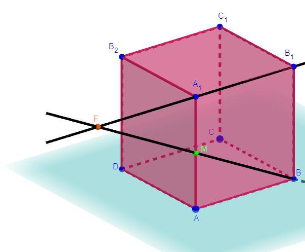 Дан куб ABCDA1B1C1D1. Точка М – середина ребра АА1. Построить точку пересечения прямой МВ с площадью A1B1C1.