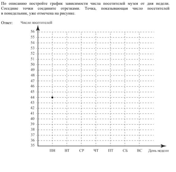 По описанию постройте график зависимости числа посетителей музея от дня недели. Соседние точки соедините отрезками.