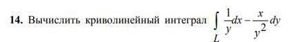 Отсюда I=2+(-1)+(-1)=0. Это и следовало ожидать, так как криволинейный интеграл по замкнутому контуру В ДАННОМ СЛУЧАЕ должен быть равным нулю, потому что подынтегральное выражение представляет собой полный дифференциал du некоторой функции u(x,y). В самом деле, так как d/dy(1/y)=-1/y²=d/dx(-x/y²)=-1/y², то подынтегральное выражение действительно есть полный дифференциал.