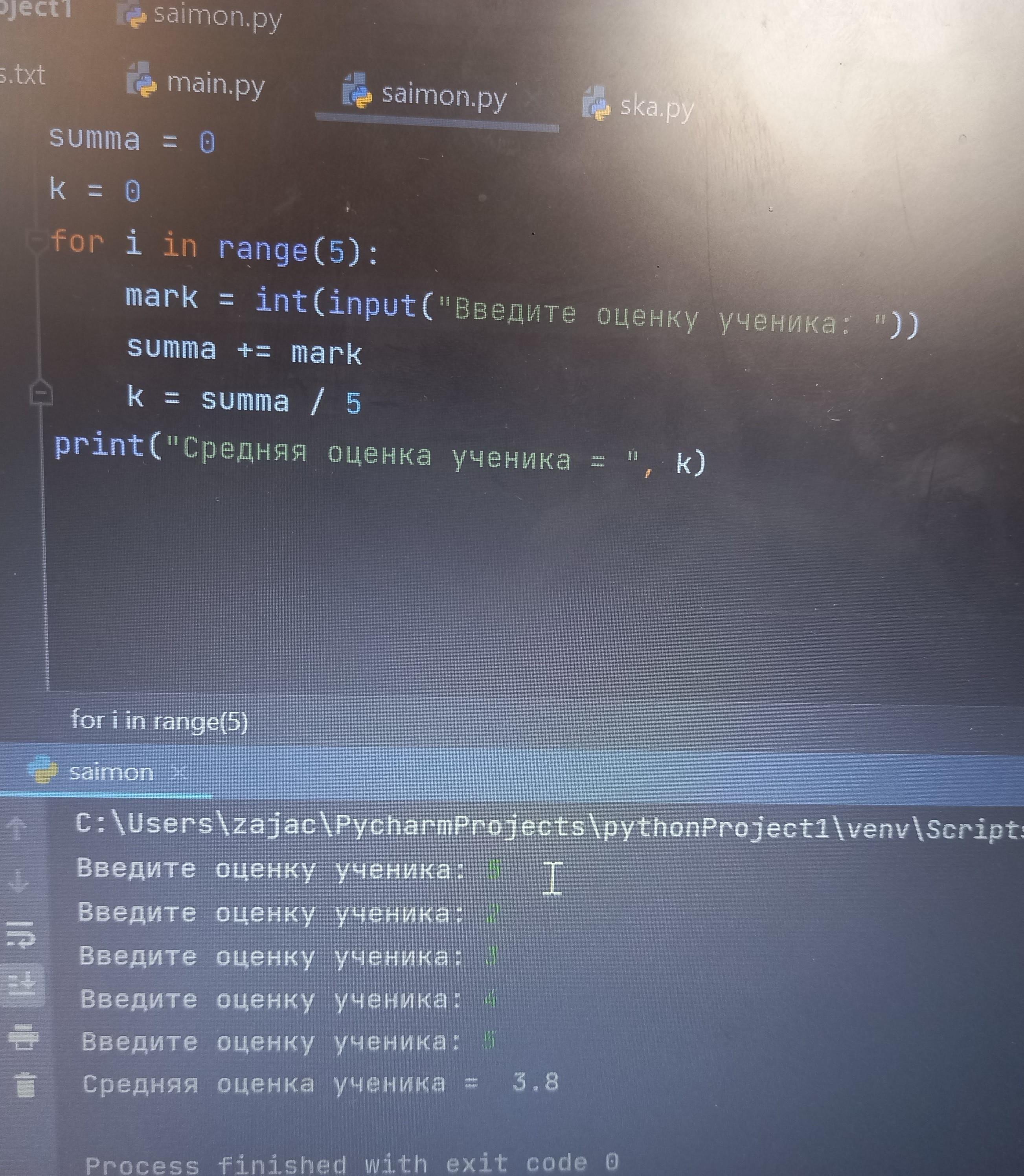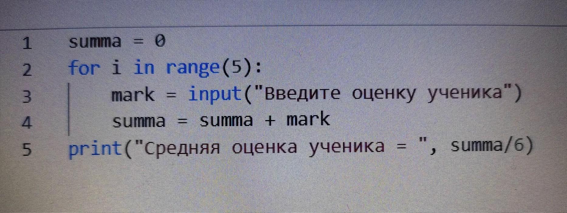 Программа запрашивает пять оценок учащегося и выводит на экран его средний балл. Нужно исправить ошибки. Даю 30 баллов