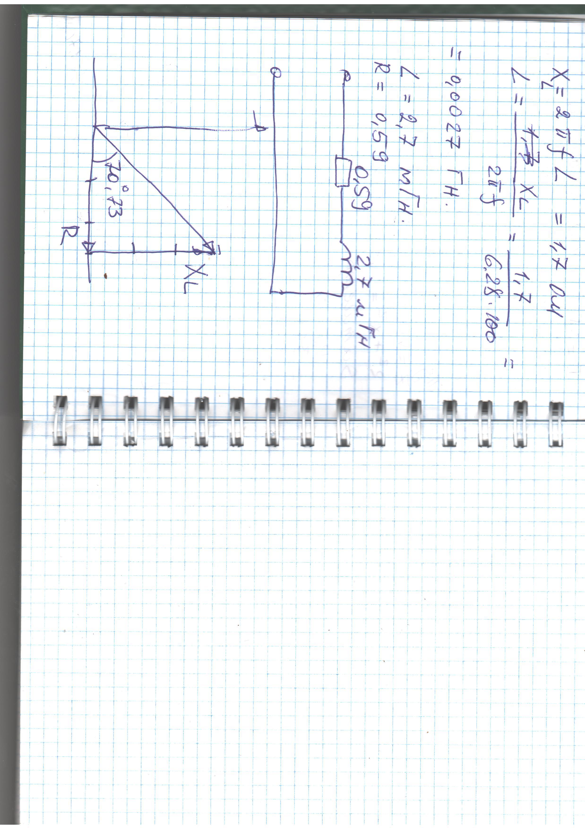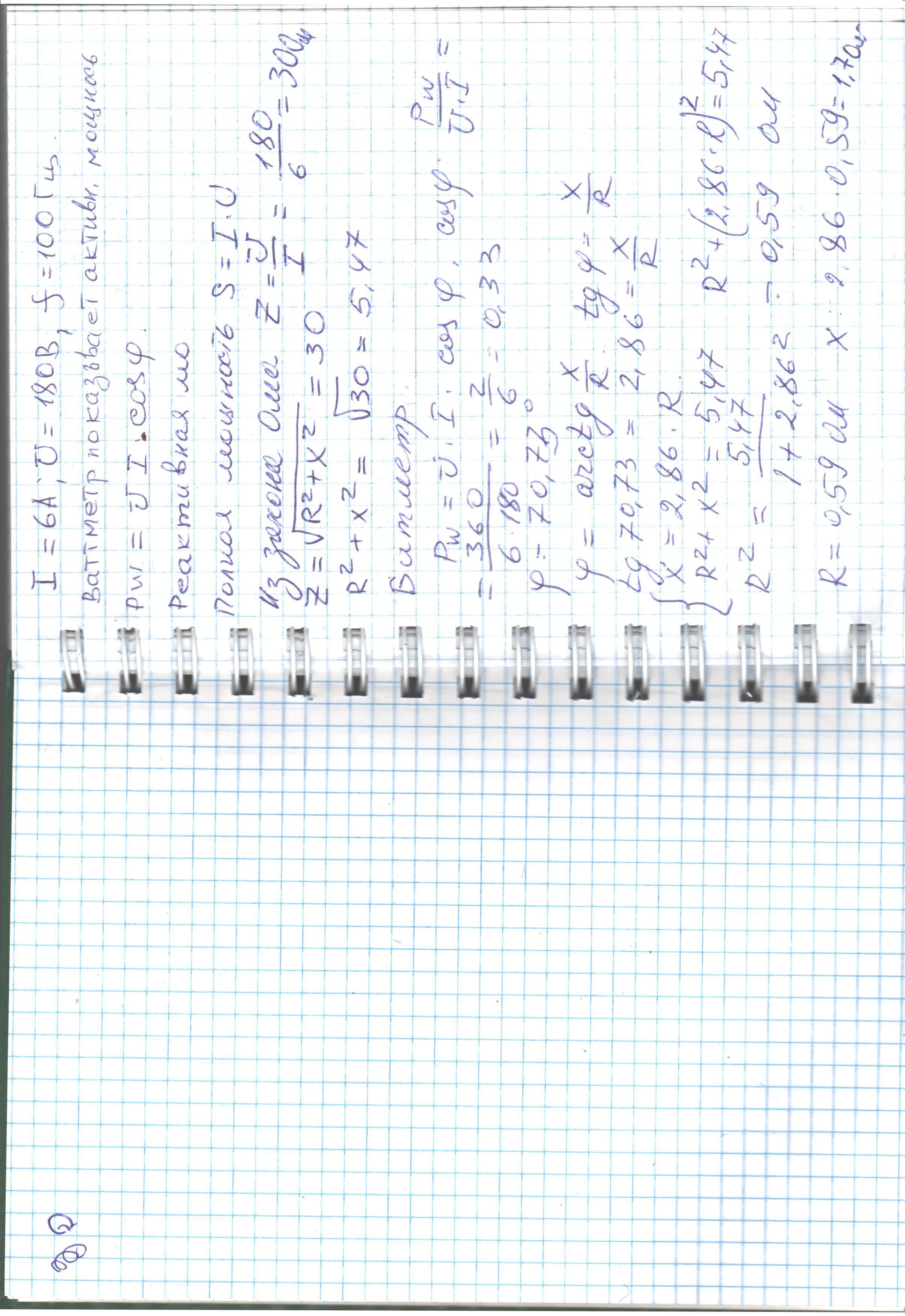В коле перманентного тока с активным опором и емкостью при частоте f=100 Гц измерительные приборы показывают - амперметр- 6А, вольтметр-180 В, ватметр - 360 В. Определить параметры схемы замещения кола с последовательным соединением элементов, реактивную и полную мощность кола.