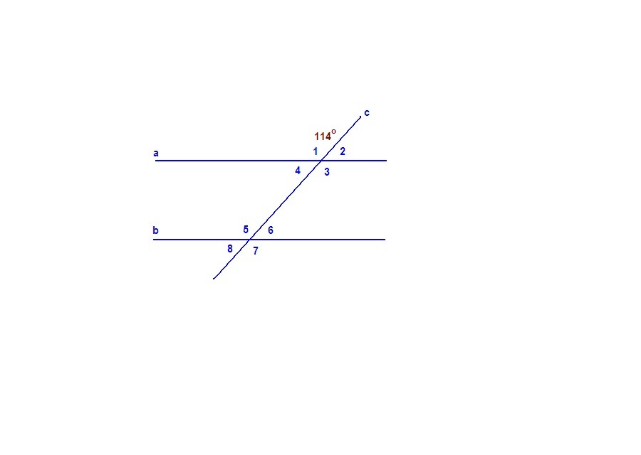 ∠5 = ∠1 = 114° как соответственные,