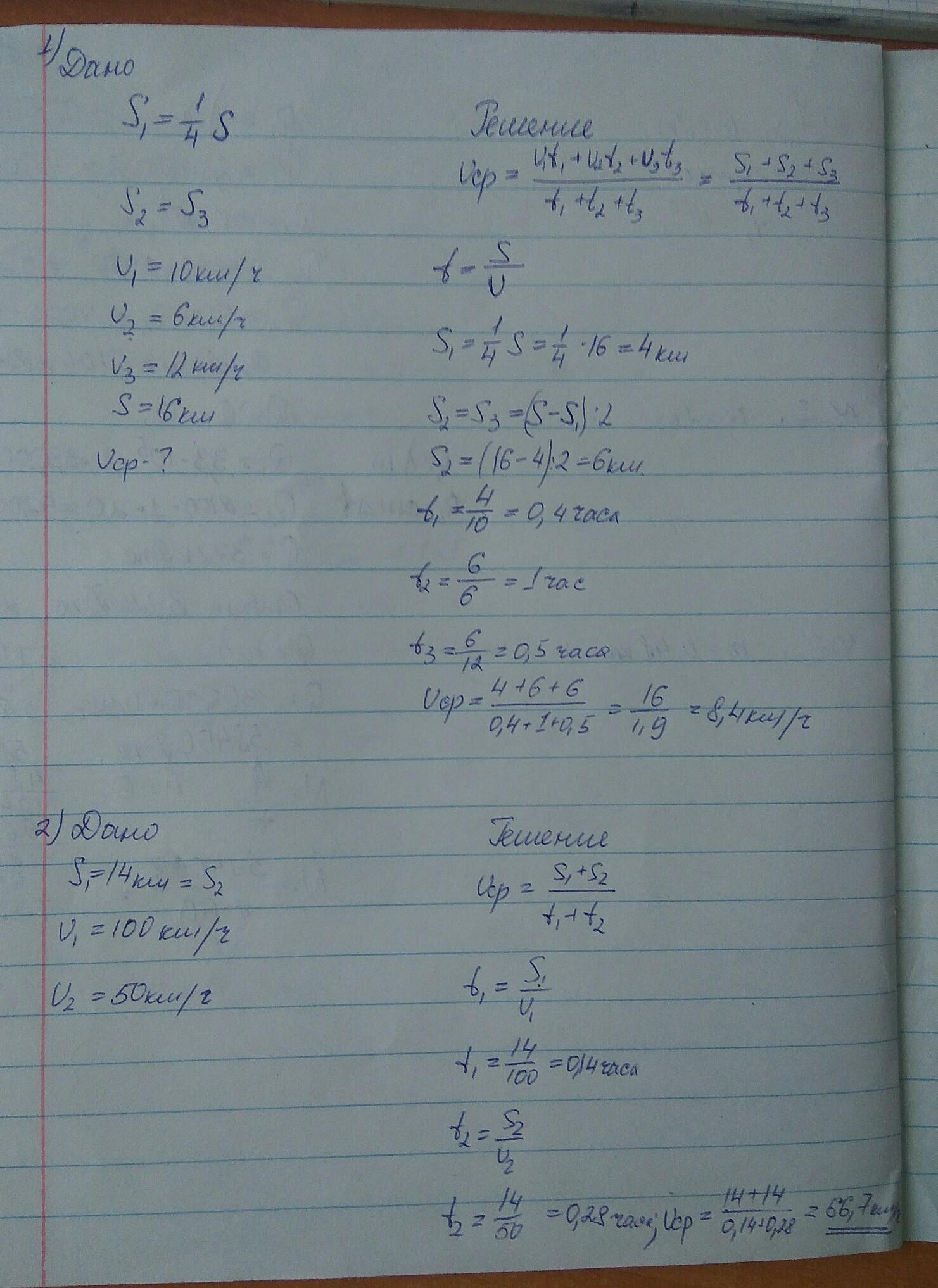 Вторая задача. Формула средней скорости в прикрепленных, время находим из формулы пути и готово, смотри в прикрепленных.