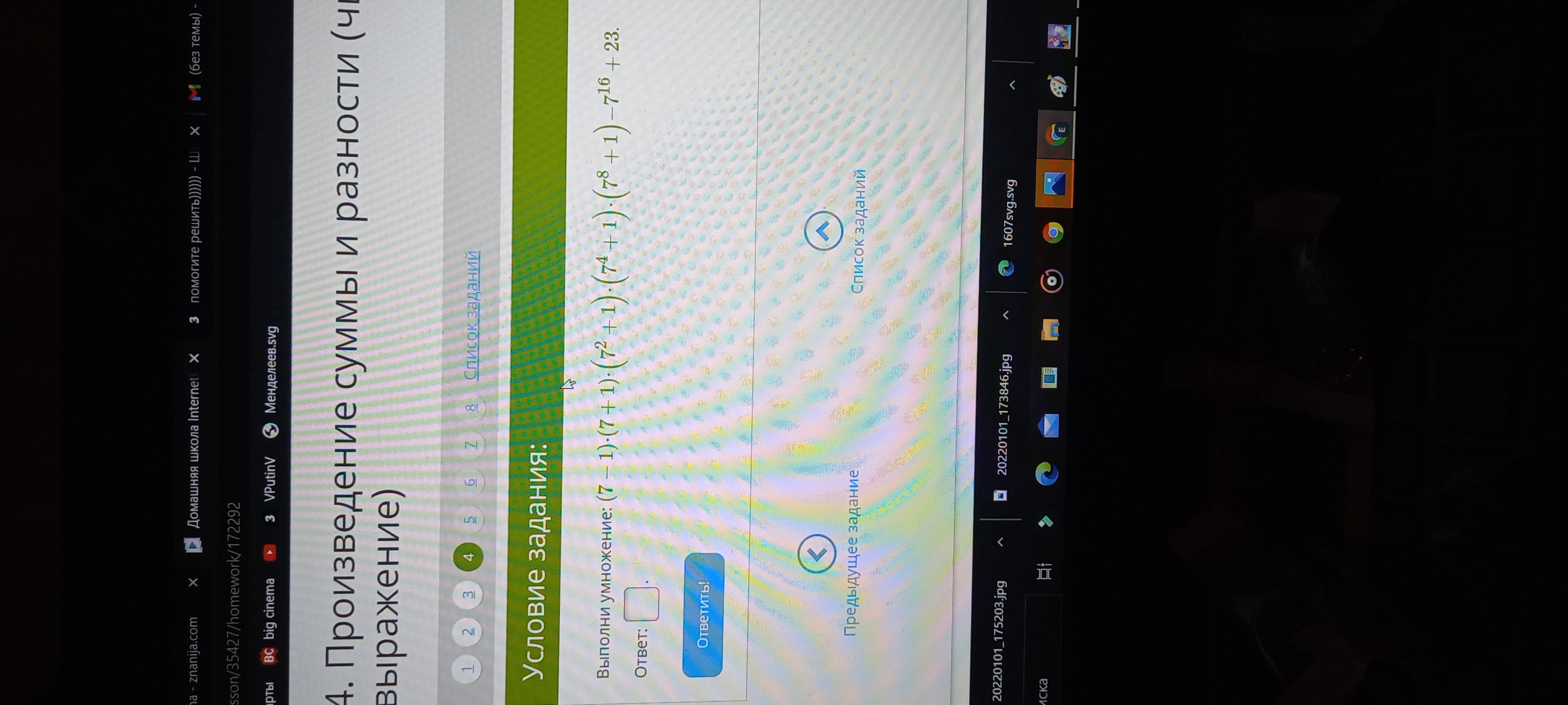 (7-1)(7+1)(7^2+1)(7^4+1)*(7^8+1)-7^16+23