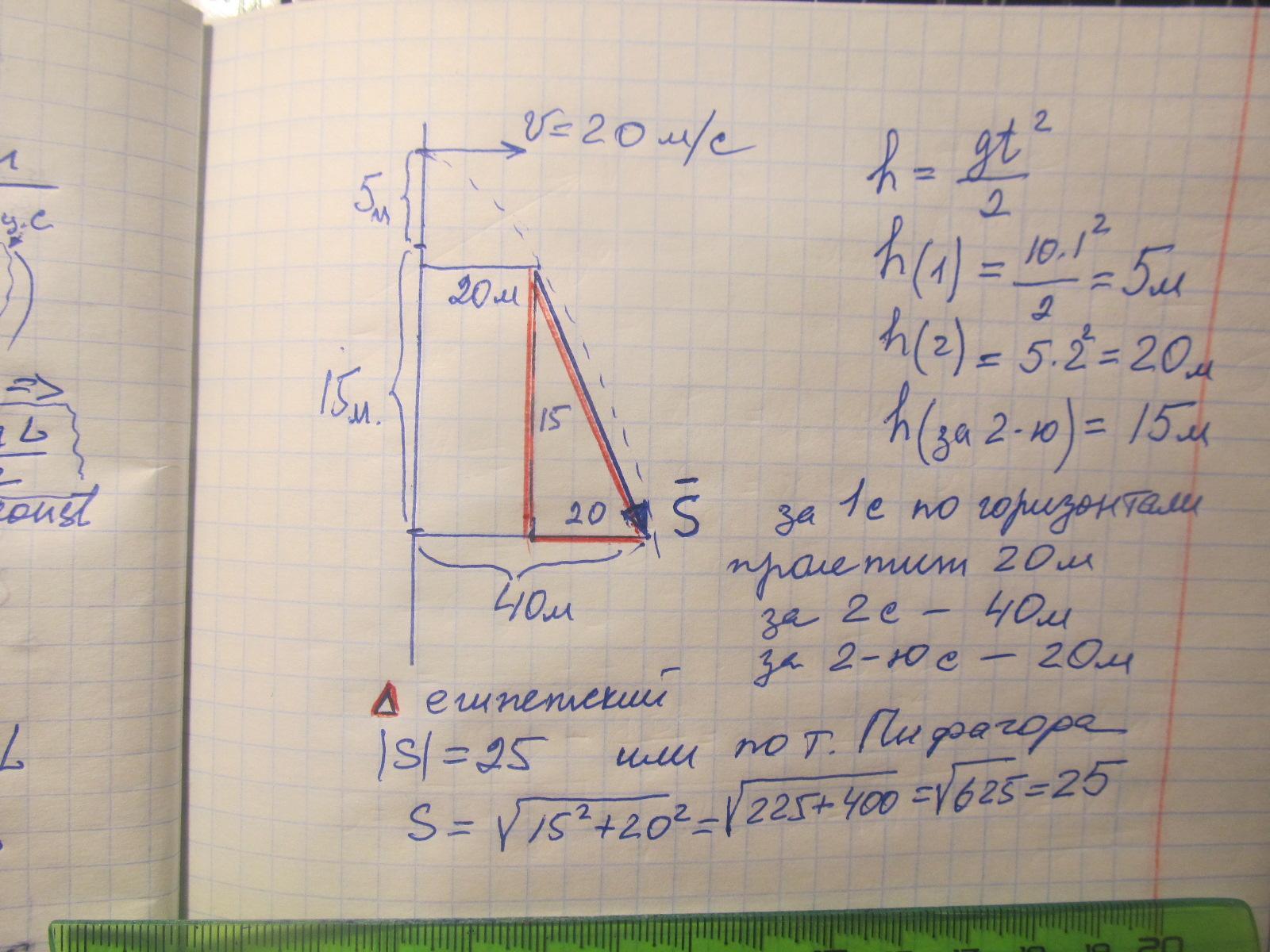 у₂ = 0,5 g · 2² = 0.5 · 10 · 4 = 20 (м)