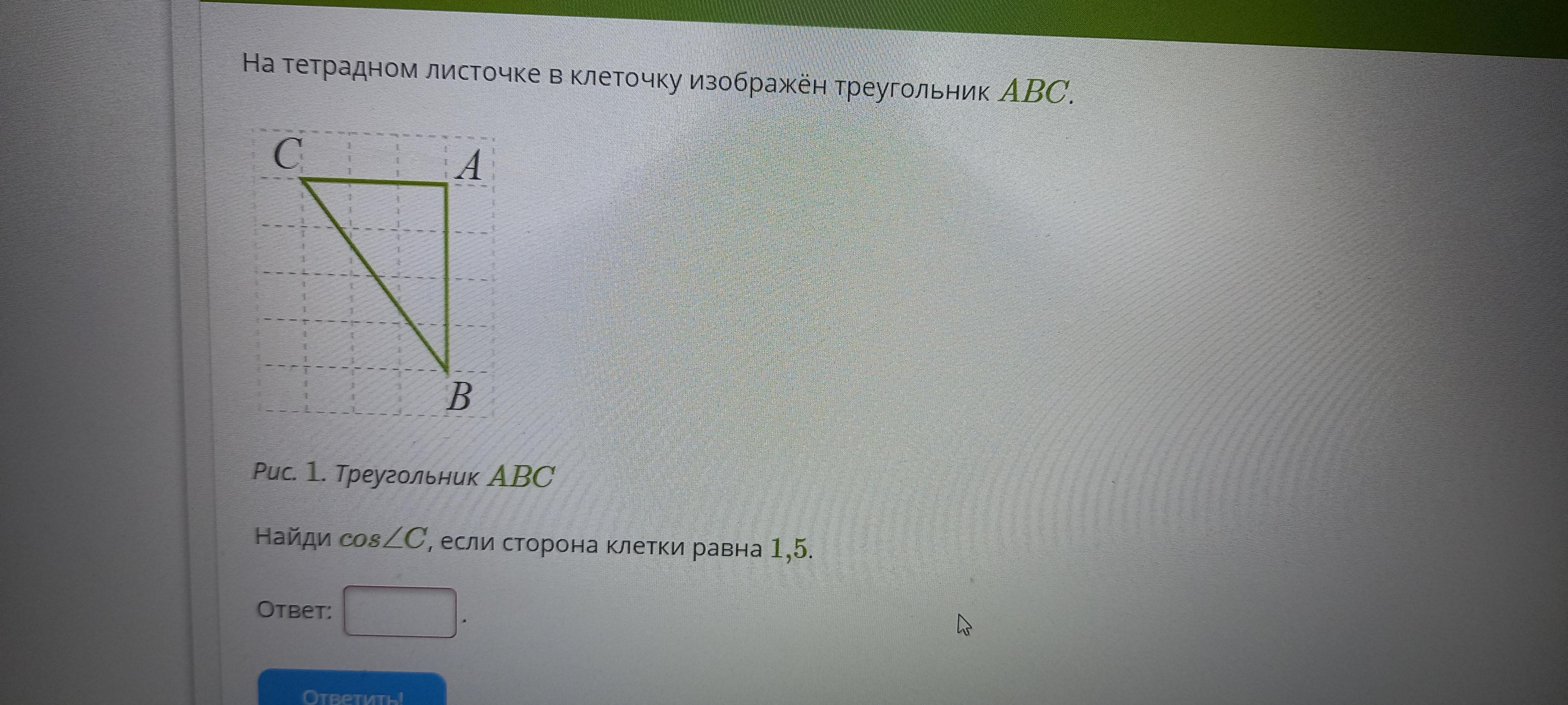cos C = АС/АВ = 4,5/7,5 = 3/5 = 0,6