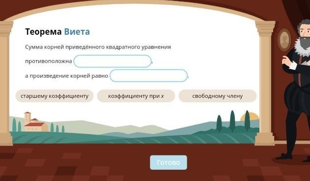 2- свободному члену. Это теорема Виета. Решение приведённых квадратных уравнений.