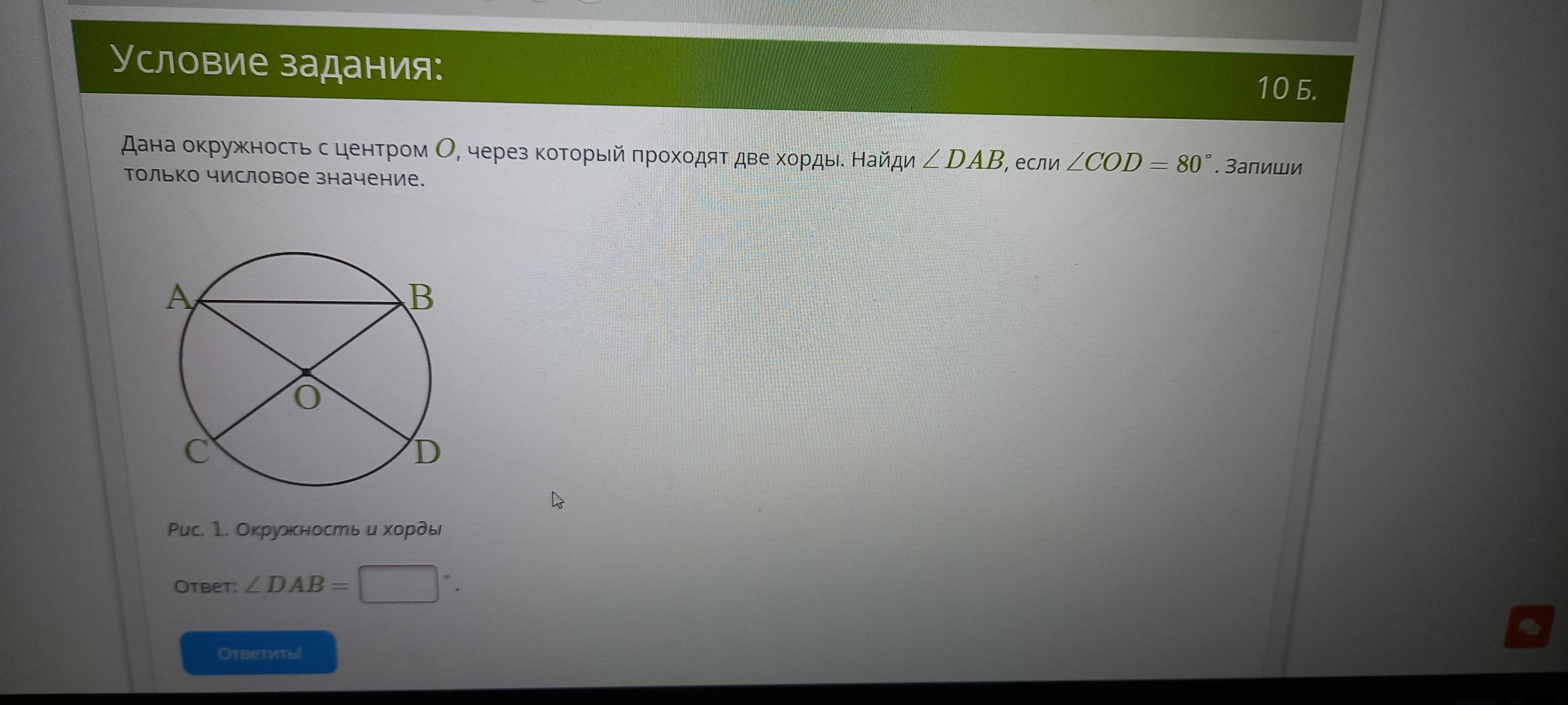 Угол DOB это и есть угол ОАВ, поэтому угол DOB = 50°.