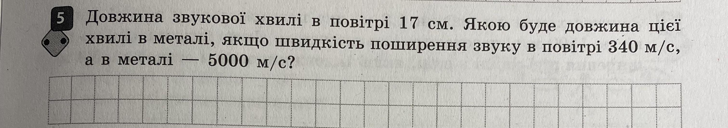 Отсюда: Л2=Л1*v2/v1=0.17*5000/340=2.5м