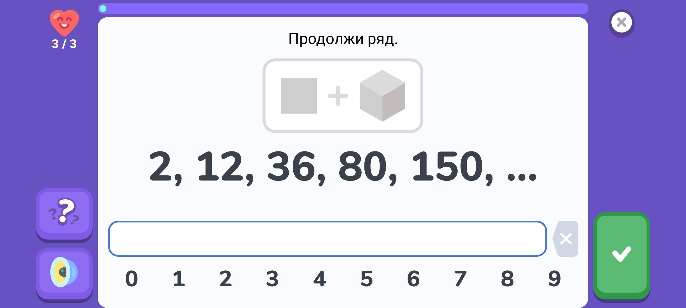 Пусть n - порядковый номер члена ряда. Замечаем, что a1=1²*2=2, a2=2²*3=12, a3=3²*4=36, a4=4²*5=80, a5=5²*6=150. Отсюда ясно, что общий член ряда an=n²*(n+1). Поэтому следующим числом будет a6=6²*7=252, и.т.д.