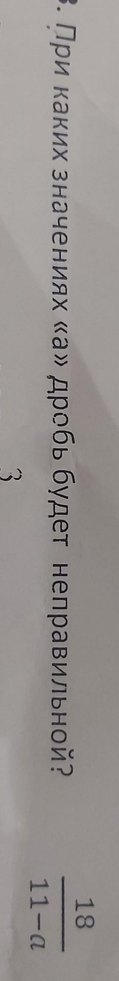 Выражение 11+а равно 18, если а = 7. Но не забудем, что значения отрицательные. То есть, при а = -7 наша дробь неправильной не будет. А вот при а = {-1,-2,-3,-4,-5,-6} наша дробь будет неправильной.