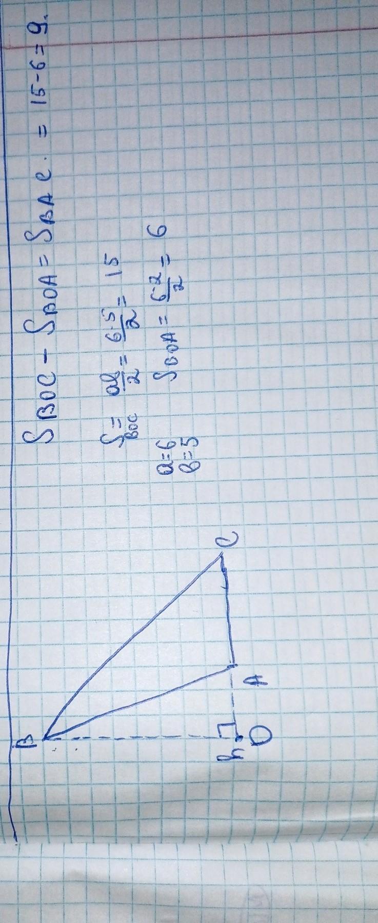 3*6/2=9/ед. кв./ - основание на высоту. высота проводится ни к самому основанию. а к его продолжению.