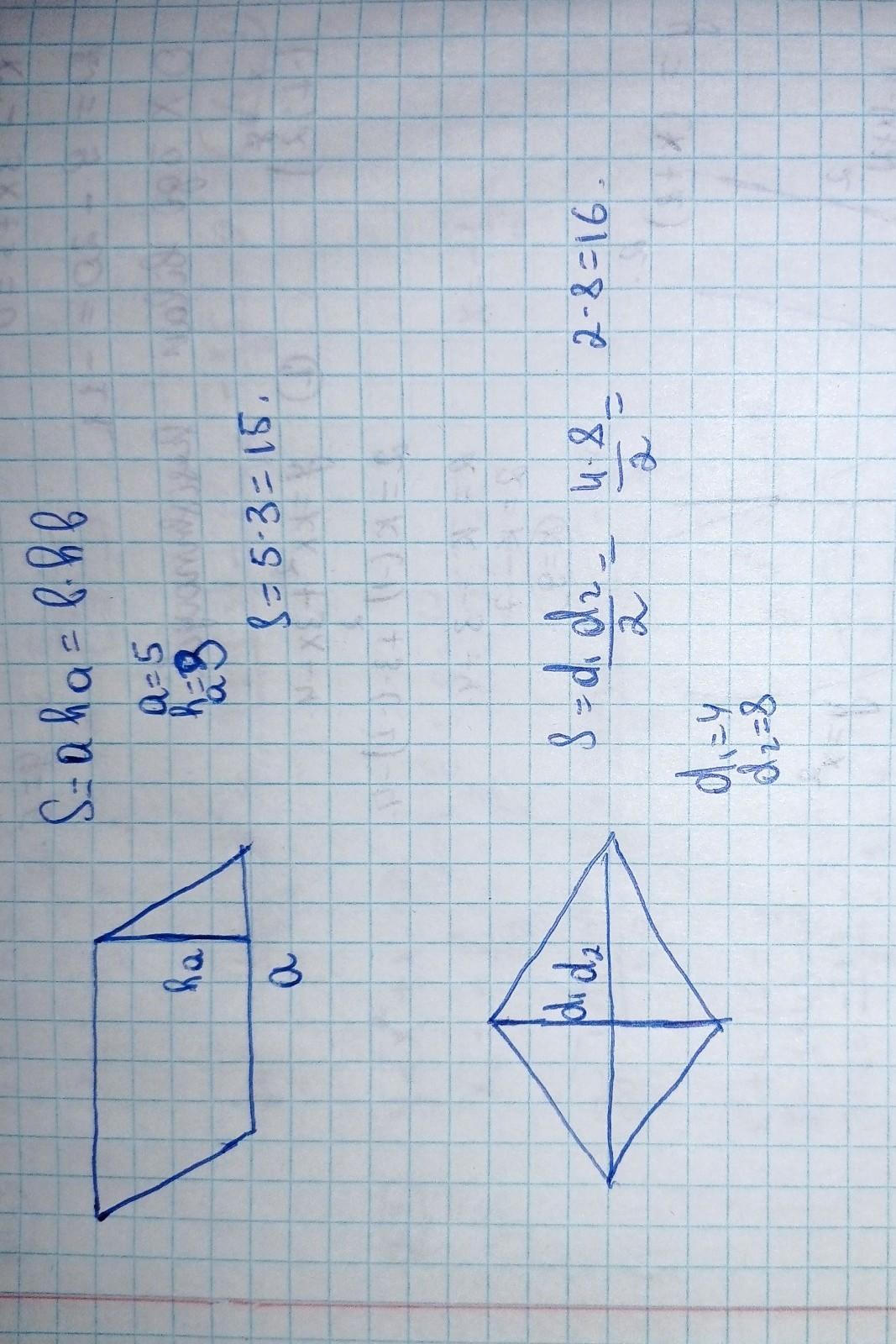 2. площадь параллелограмма равна 5*3=15/ед. кв./