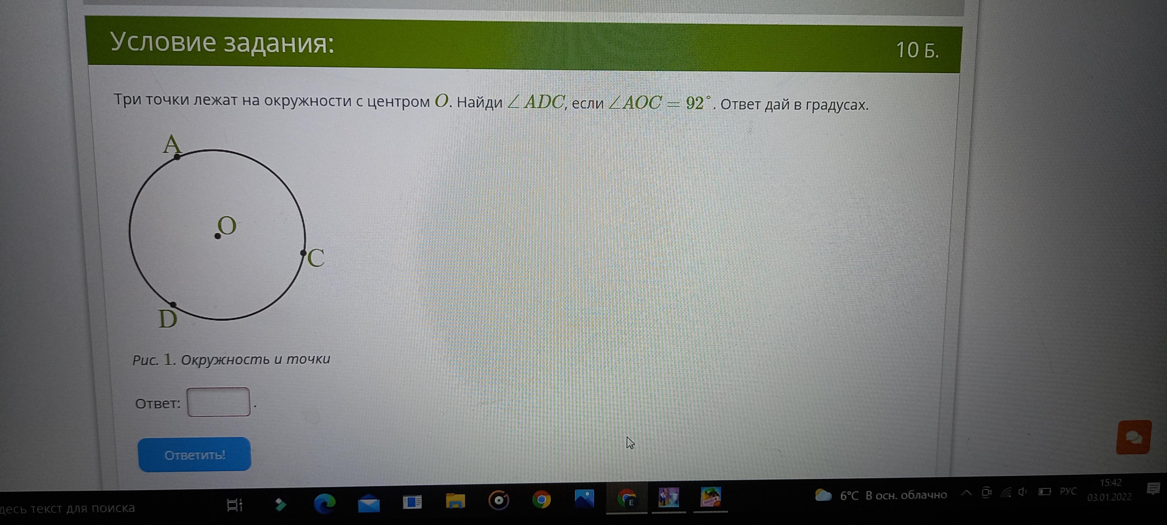 ∠АОС и ∠АДС опираются на одну и ту же дугу АС, при этом ∠АОС является центральным углом, поэтому вписанный ∠АДС равен половине ∠АОС: