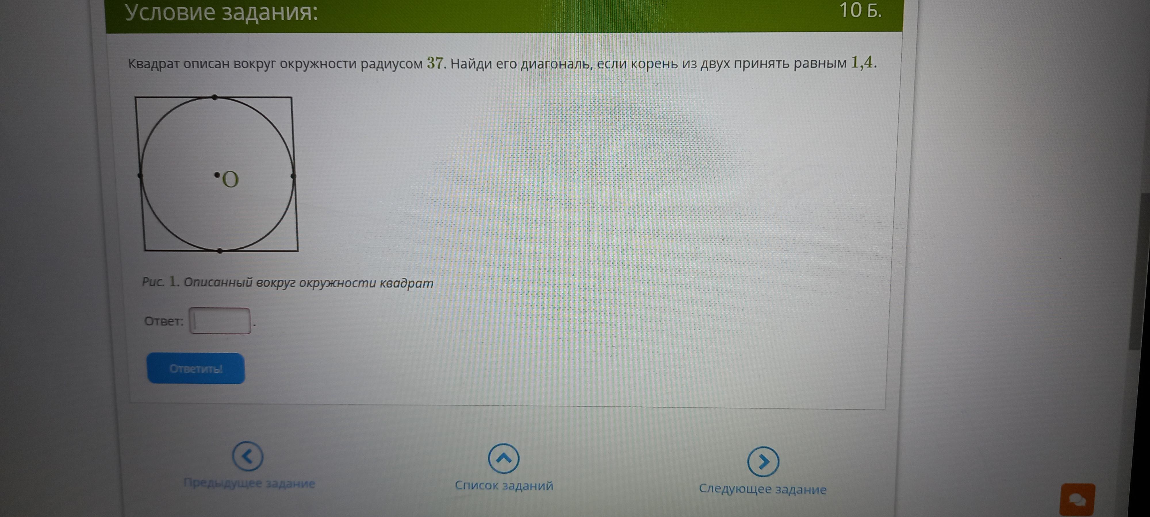 Понятно, что сторона квадрата равна 2r или 37*2=74