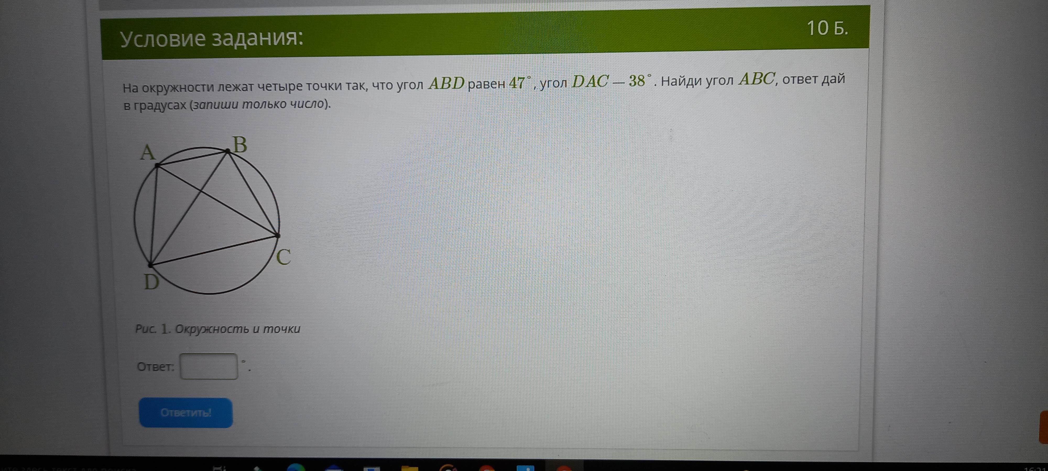 Угол АВС вписанный, значит он в два раза меньше дуги на которую он опирается. дуга АС это сумма дуг АD и DC.