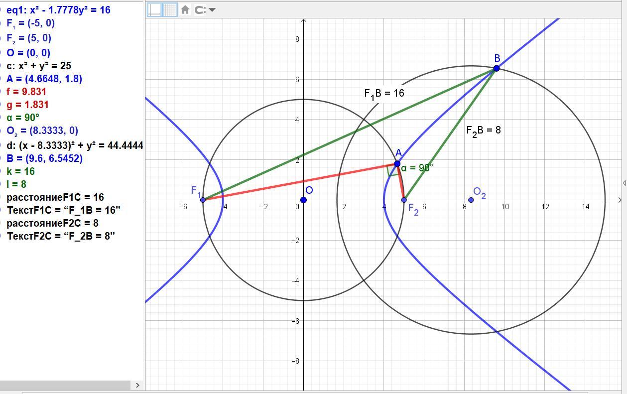 Искомая точка А – это точка пересечения заданной гиперболы и окружности, уравнение которой x² + y² = 5².