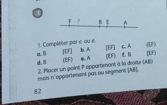 2. Placer un point P appartenant à la droite (AB) mais n'appartenant pas au segment [AB]. e. A
