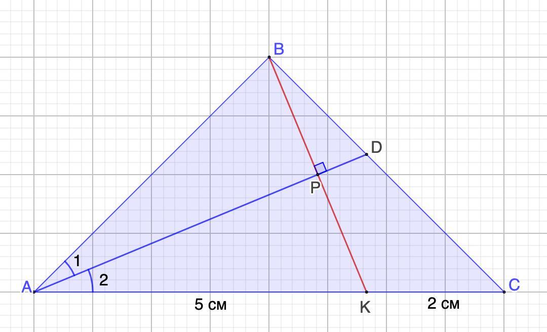 АВ = ВС = 5 см (ΔАВК - равнобедренный)