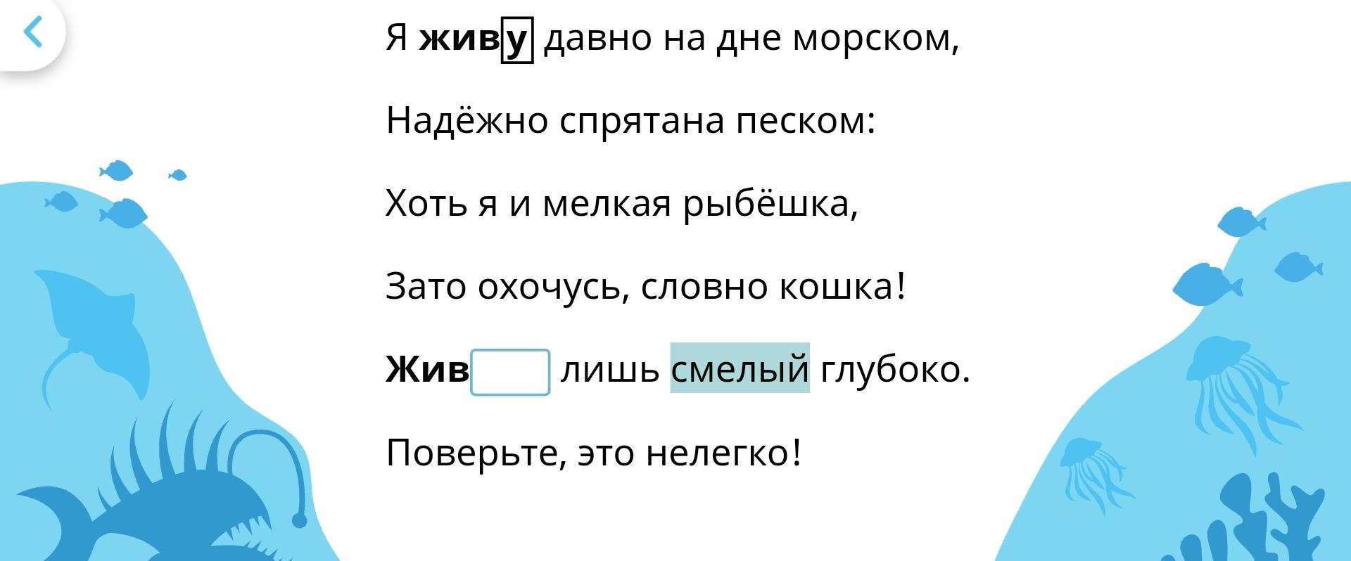 Я живу давно на дне морском,надёжно спрятана песком:хоть я и мелкая рыбёшка,зато охочусь,словно кошка! Жив... лишь смелый глубоко. Поверьте, это не легко ! (ПОМОГИТЕ ПЖ)!!!
