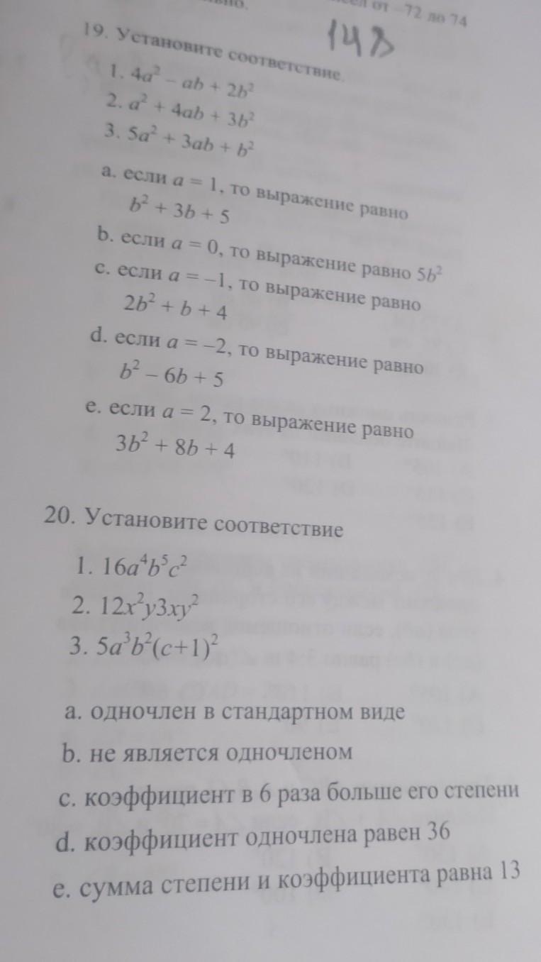 3) 5a² + 3ab + b² = b² + 3b + 5 при а = 1; ответ а.