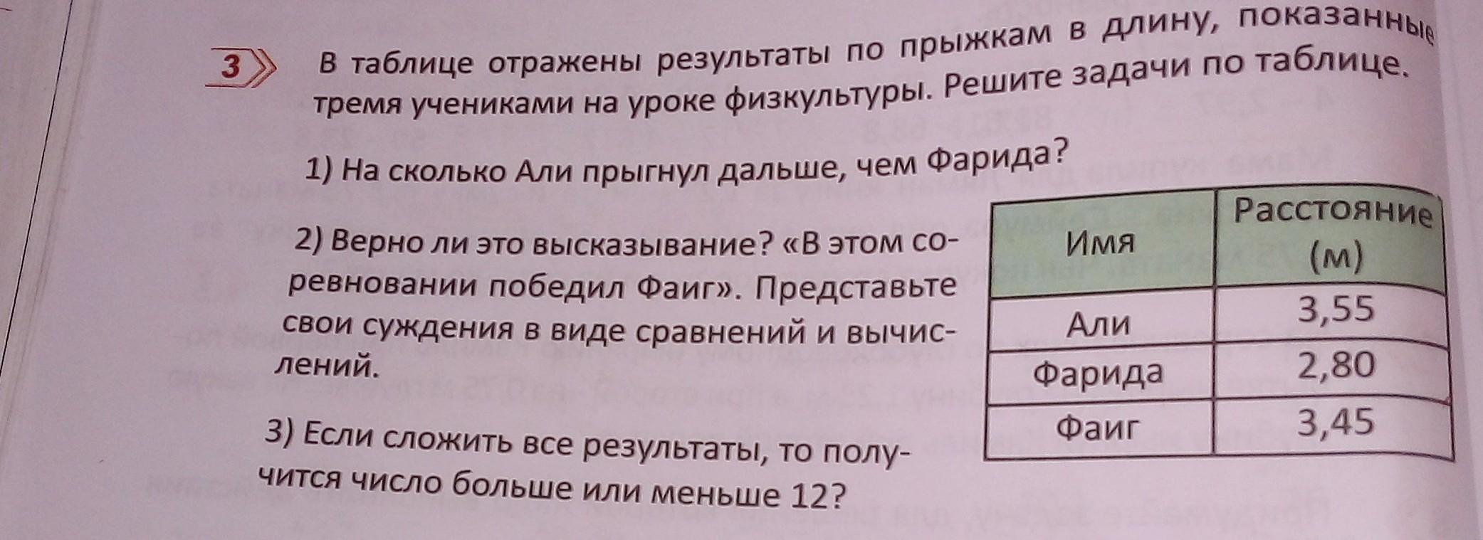 2) 3.55 > 3.45 Фаин прыгнул меньше Али.