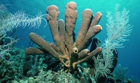 На фото изображено животное под названием морская губка. Конкретно эта губка относится к классу Обыкновенные губки.