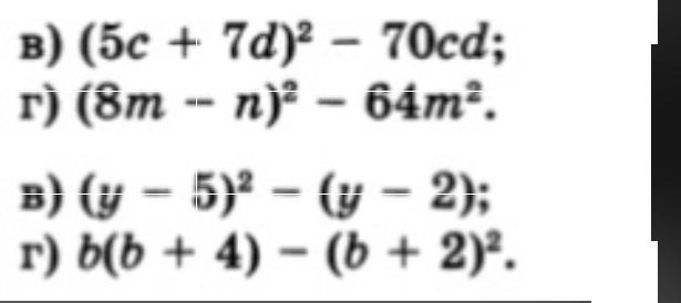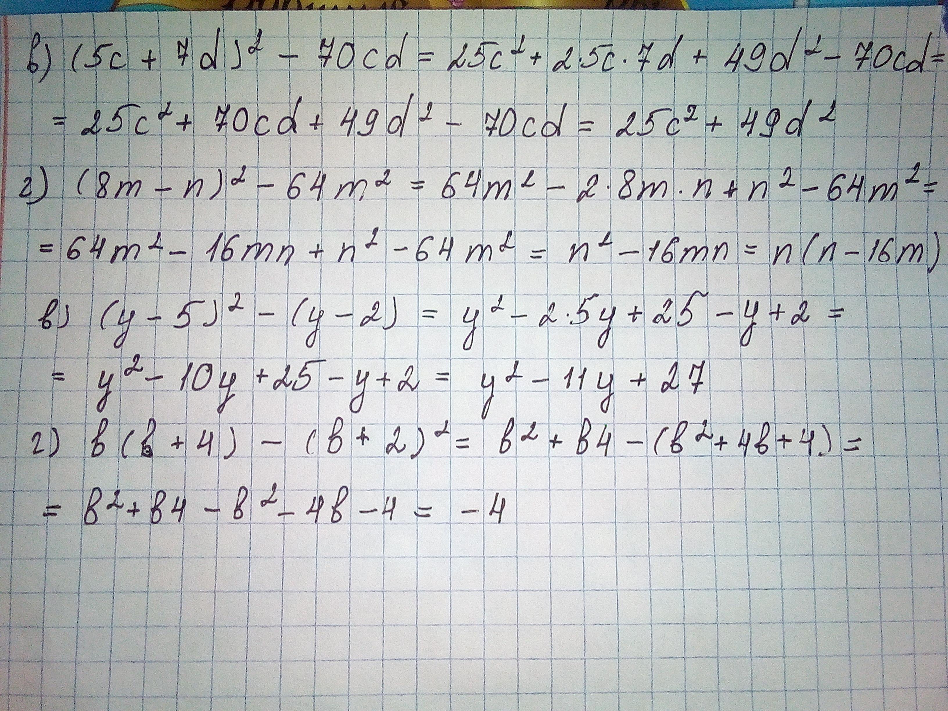 в) (5с+7d)^2-70cd=25c^2+70cd+49d^2-70cd=25c^2+49d^2=(5c+7d)*(5c+7d)