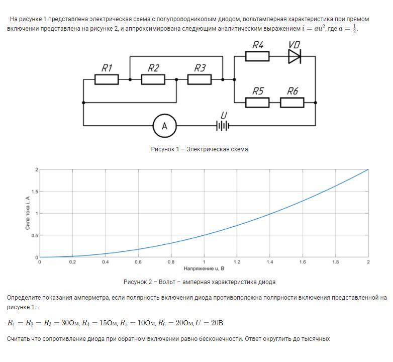 2)Определите показания амперметра, если полярность включения диода противоположна полярности включения представленной на рисунке 1.