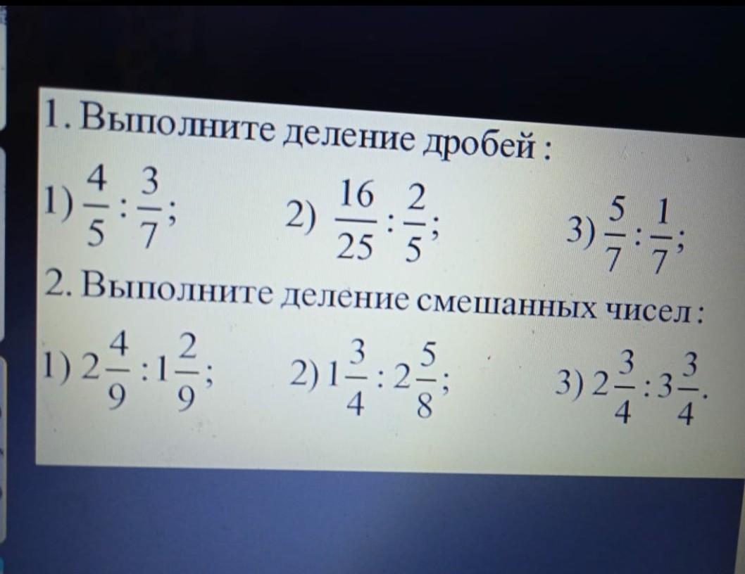 1) 4/5 : 3/7 = 4/5 * 7/3 = 28/15 = 1. 13/15
