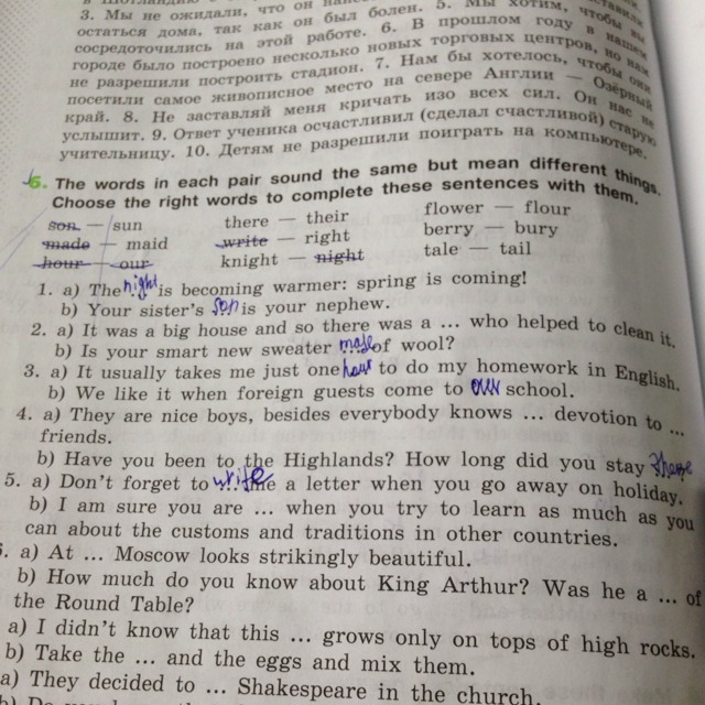 their – there 5 write – right 6 night – knight 7 flower – flour 8 bury - berry