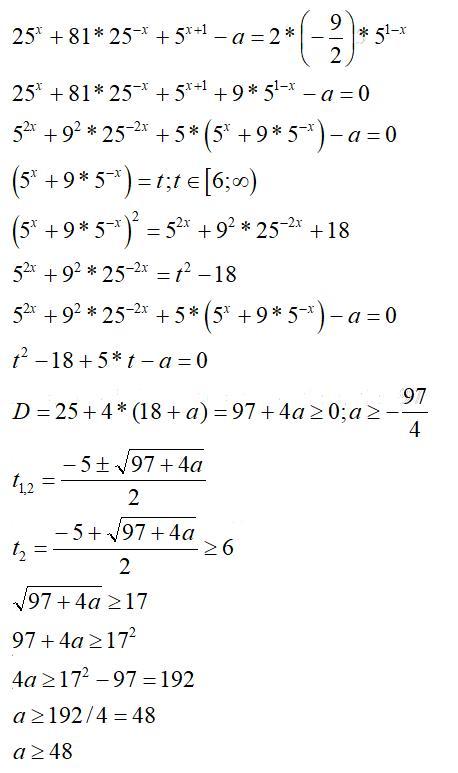 если разделить t на 3 то получится выражение вида t/3= y+(1/y) где y=3*5^(x) > 0
