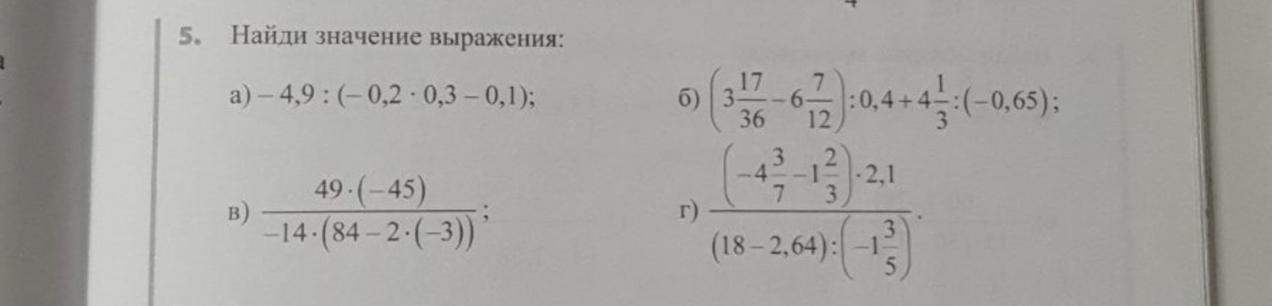 3) 4. 1/3 : (-0,65) = 4. 1/3 : (-65/100) = 13/3 : (-13/20) = 13/3 * (-20/13) = -20/3 = -6. 2/3